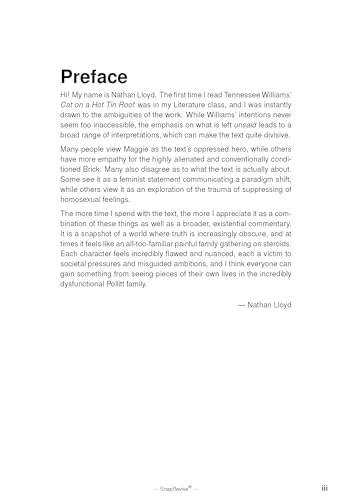 Unlock the depths of Tennessee Williams' classic play with this comprehensive revision guide, designed to elevate your understanding and analysis to new heights. This essential resource is packed with insightful analysis, key quotes, and detailed character insights, all crafted to help you achieve top grades in English literature. Dive into expertly written sample essays that demonstrate how to effectively convey complex themes and character dynamics. Whether you're preparing for exams or seeking to deepen your appreciation of this iconic work, this guide is your ultimate companion for mastering "Cat on a Hot Tin Roof."