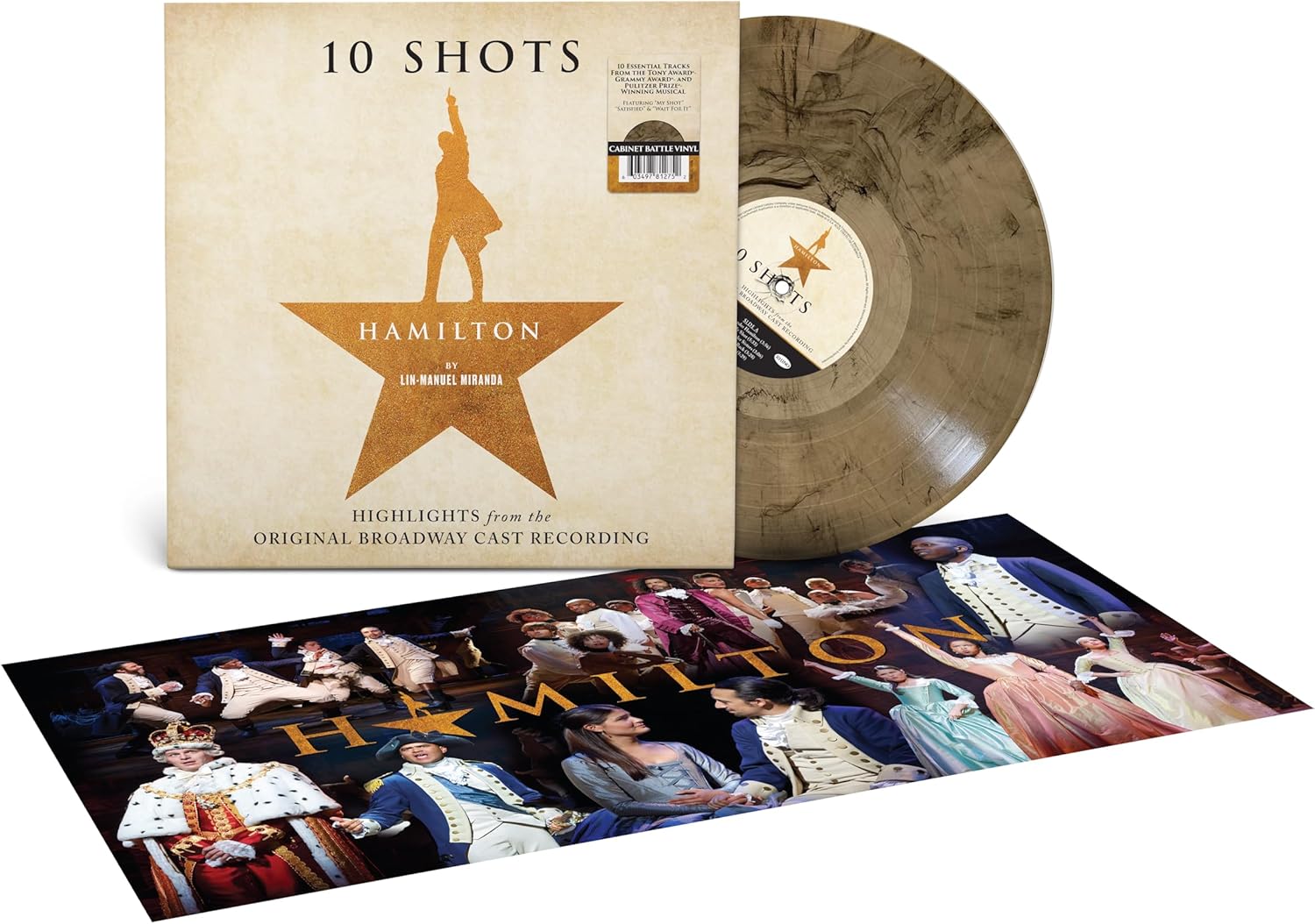 To mark the 10th anniversary, Rhino are releasing a 1LP 'best of' collection entitled 10 Shots: Highlights from the Original Broadway Cast Recording, curated by Hamilton creator Lin-Manuel Miranda. The compilation features the cast album's most-consumed tracks while still maintaining a narrative arc. The LP comes with a poster insert featuring photos of the Original Broadway Cast, which have not appread in Hamilton music releases.